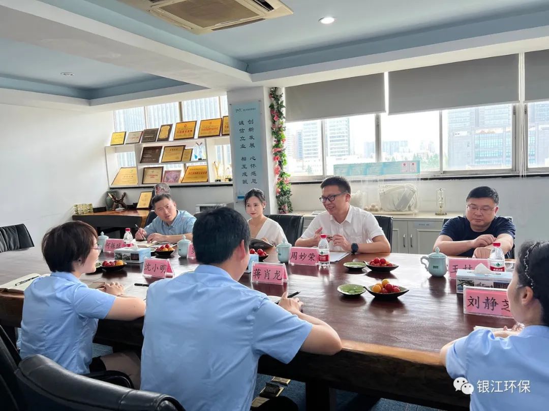 6月28日上午,共青團杭州市委副書(shū)記周妙榮、團市委統戰部王林昌、團西湖區委副書(shū)記羅琦、團西湖區委團務(wù)部部長(cháng)何振球一行走訪(fǎng)調研杭州銀江環(huán)??萍加邢薰?。銀江環(huán)保黨支部書(shū)記蔣肖龍、常務(wù)副總沈小明等公司管理人員熱情接待,并作工作匯報。