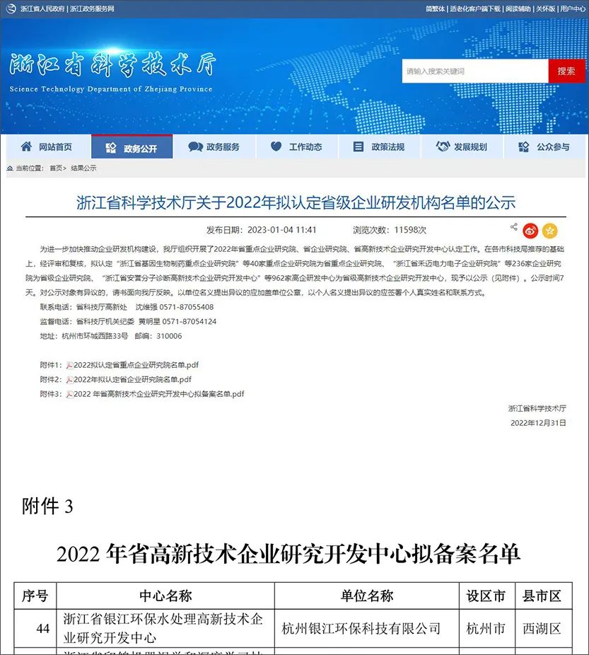 銀江環(huán)保獲得省級高新企業(yè)研發(fā)中心認定以及2項科技獎,為2023年高質(zhì)量發(fā)展夯實(shí)基礎發(fā)布日期:2023-01-06