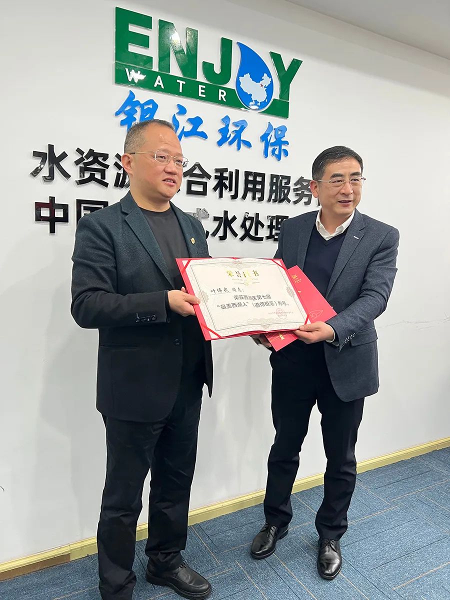 1月13日上午,西湖區領(lǐng)導走訪(fǎng)銀江環(huán)保,區委副書(shū)記陸志敏為董事長(cháng)葉偉武頒發(fā)西湖區第七屆“最美西湖人”(道德模范)稱(chēng)號榮譽(yù)證書(shū)。